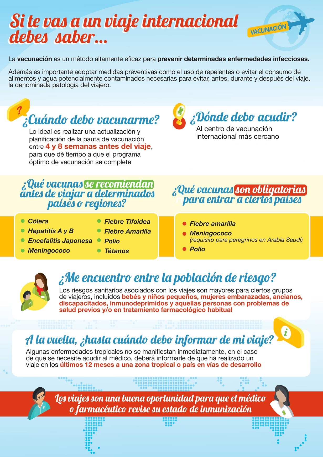 La vacunación es otro requisito a tener en cuenta antes de viajar al exterior. Tu médico de medicina general podrá informarte sobre las vacunas necesarias para realizar tu viaje de forma segura. Dependiendo del lugar al que vayamos a viajar serán necesarias unas u otras vacunas. Incluso dependiendo de la zona dentro del país. En algunas situaciones también pueden ser necesarias la vacuna de la fiebre amarilla y la meningitis meningocócica.